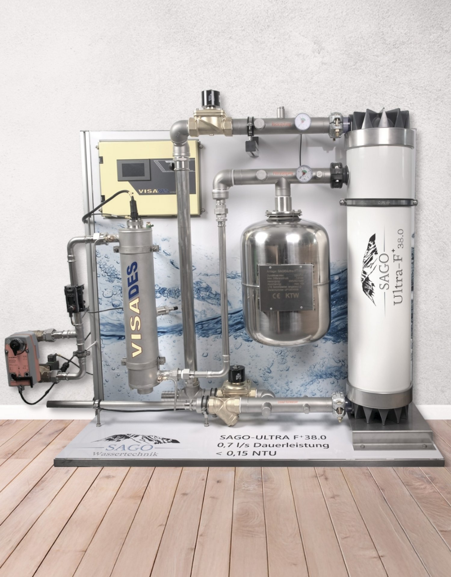 Aus fachlicher Sicht herrscht daher der Konsens, dass ab 1,0 NTU Trübung eine sichere UV – Desinfektion nicht mehr garantiert ist. Die SAGO ULTRA F+ Filtrationsanlagen garantieren Trübungen im Ablauf < 0,15NTU. Aufgrund der eingesetzten Membrane werden sämtliche ungelösten Stoffe abgeschieden. Das Ergebnis ist kristallklares Wasser, welches nicht nur alle rechtlichen Anforderungen an die Qualität erfüllt, sondern diese dauerhaft auf ein stabiles Optimalniveau hebt.